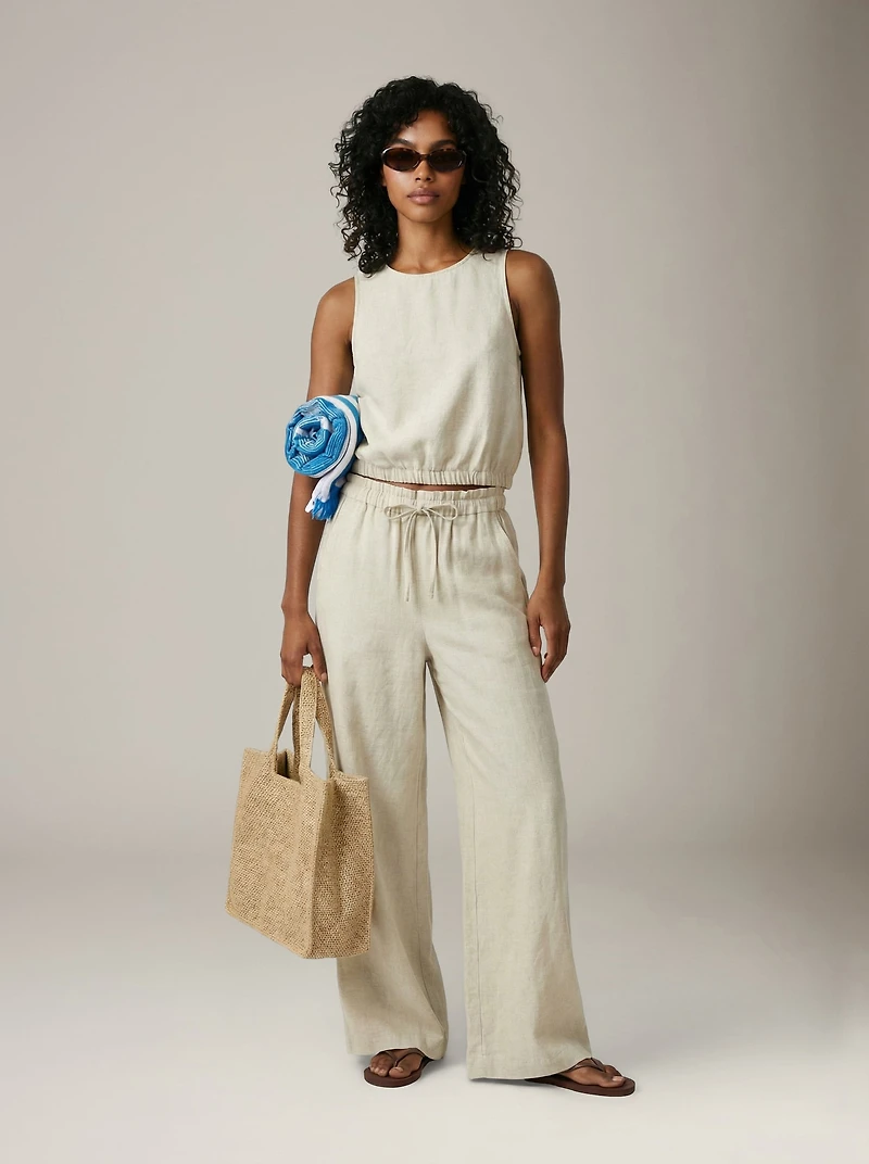 Wide-leg linen blend pants