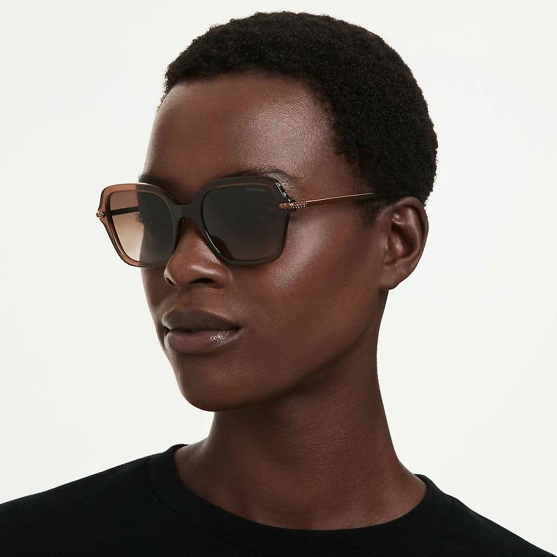 These Swarovski sunglasses take inspiration from the geometric silhouettes of the Dextera jewellery family. The large square frames are transparent brown, and are matched by brown lenses with a striking gradient effect. For extra refinement, a pavé setting of crystals is placed along each temple. A sleek and modern look for the brightest days.