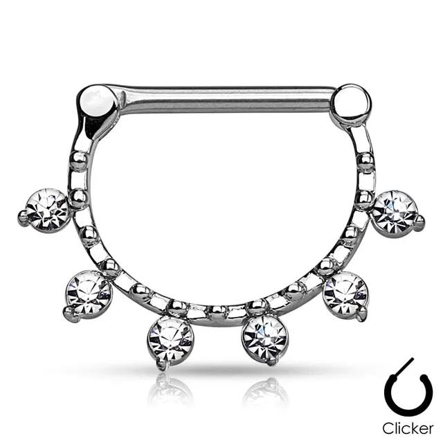 Surgical Steel + 6 Crystal Nipple Clicker 14g