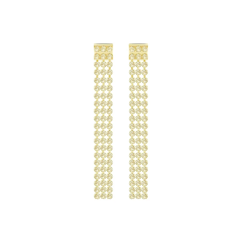 Go heavy on the sparkle on your next night out with this irresistible pair of on-trend long earrings in gold plating. The dangling golden crystal cup chains reflect the light beautifully and have been specially designed not to catch on clothing.