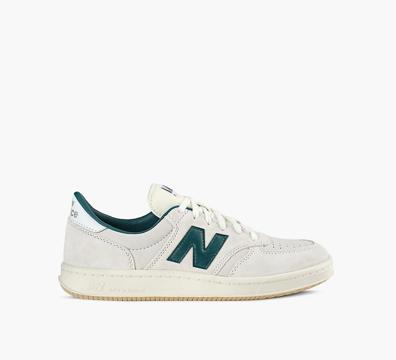 A modern revival of a court classic, the New Balance T500 blends retro sport heritage with clean, contemporary style. Its low-profile silhouette is crafted with premium leather and suede overlays, offering a refined look that transitions effortlessly from weekday to weekend. A cushioned midsole and durable rubber outsole ensure comfort and traction, making it a staple for everyday wear with timeless appeal.