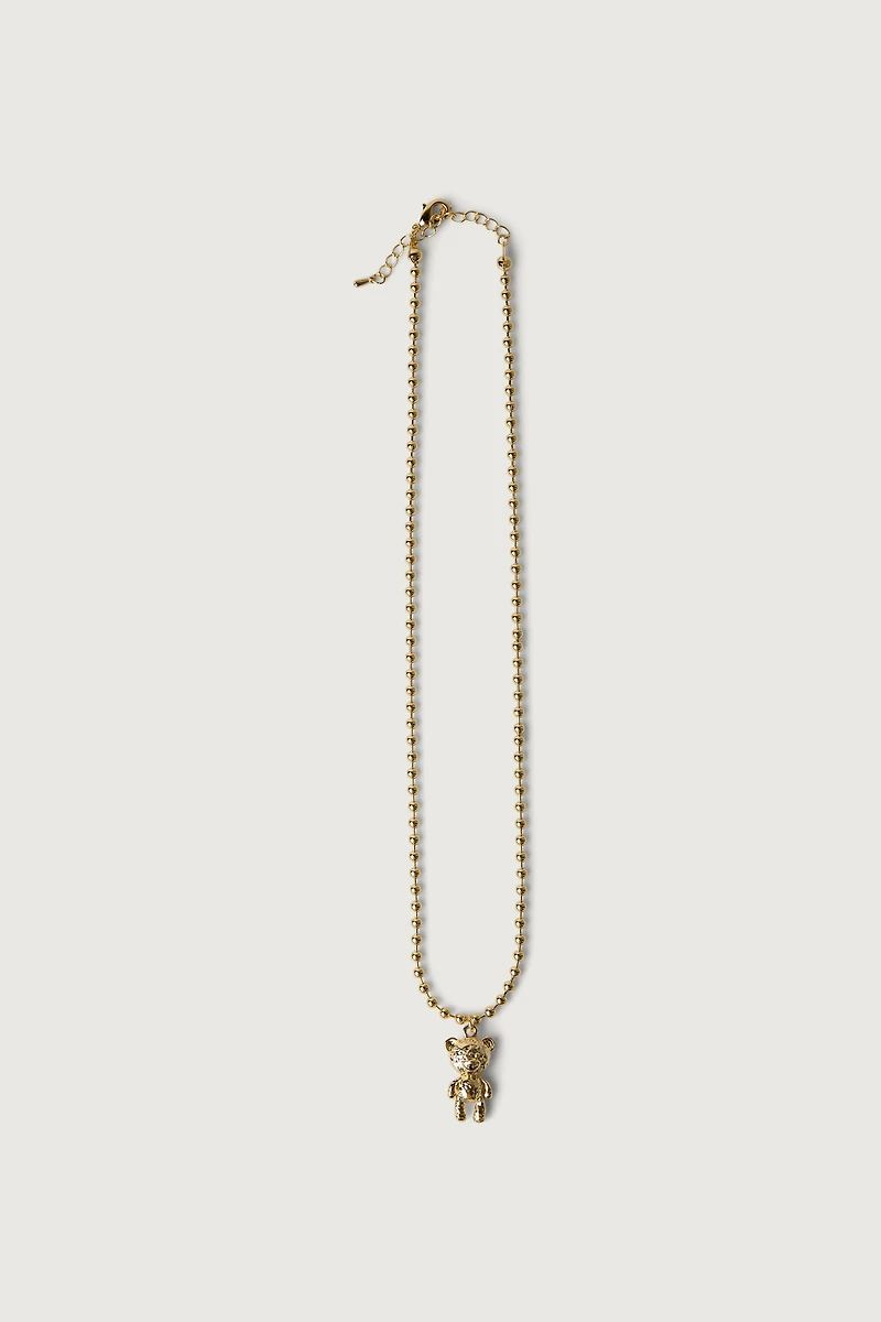 The minimalist ball chain design offers a clean, modern look, while the teddy bear pendant brings a subtle, inviting detail to any outfit. Perfect for everyday wear or as a unique statement piece, this necklace combines simplicity and charm in one easy-to-wear design.