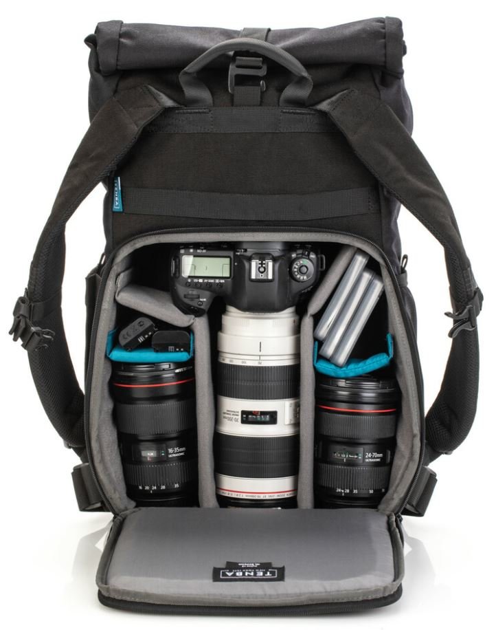 Fulton backpacks combine timeless, vintage style with modern comfort, function and camera protection. Their soft, lightweight canvas design blends seamlessly into any environment, yet they possess a full complement of professional-grade features, such as secure rear camera access, tripod/monopod support, a padded laptop sleeve, and an expandable rolltop opening. The 16L backpack fits a mirrorless or DSLR camera with 5-7 lenses (up to attached 70-200mm 2.8), plus a laptop up to 16 inches (40 cm). It also fits the DJI Mavic and other compact drones. And the top rolltop section has tons of space for food, a lightweight jacket and other personal gear.