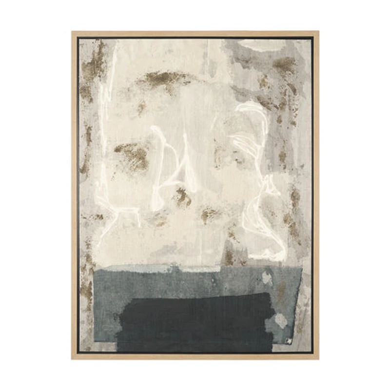 "Textural Echo - Ash" by Kristine Hegre is a captivating abstract canvas that merges earthy tones with fluid movement, offering a serene interplay of light and shadow. The soft whites and deep grays blend effortlessly, imbuing the piece with a sense of calm and intrigue. Framed in a sleek, minimalist border, this artwork is a perfect balance of texture and tranquility, inspired by the raw beauty of natural landscapes."Textural Echo - Erosion" by Kristine Hegre is a captivating abstract canvas that seamlessly blends earthy textures with ethereal forms. This mixed-medium piece features muted tones of slate, ivory, and soft blue, layered to create a sense of depth and intrigue. Framed in a sleek, natural wood, the artwork evokes a sense of calm and connection to the natural world, inviting contemplation and inspiration."Textural Echo - Fragment" by Kristine Hegre is a captivating exploration of texture and form, this abstract canvas features layers of neutral earth tones juxtaposed with deep charcoal and soft whites. The piece invites introspection with its dynamic brushstrokes and raw, tactile feel, suggesting the rugged beauty of untamed landscapes. Elegantly framed, it adds a touch of sophistication and modernity to any space.