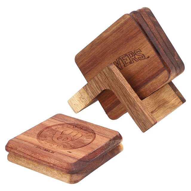 The Memory Company Milwaukee Brewers 6-Pack Acacia Wood Coaster Set