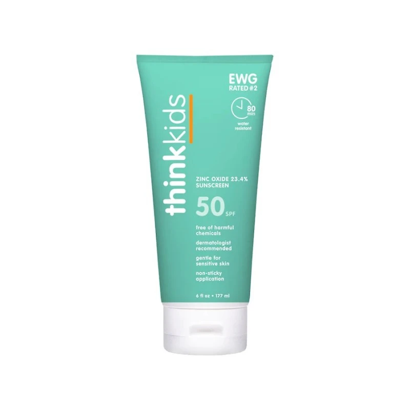 Protect their skin with Thinksport Kids Sunscreen. This broad-spectrum sunscreen offers UVA and UVB protection with SPF 50. It's cruelty-free, non-toxic, reef-safe, dermatologist and pediatrician-tested, and recommended by dermatologists. This mineral-based sunscreen is suitable for sensitive skin and contains 23.4% non-nano zinc oxide. The non-sticky and non-oily formula absorbs quickly without leaving a tacky residue. It's also water-resistant for up to 80 minutes of play. Use it on face and body skin for sheer-coverage sunburn prevention | Thinkbaby Thinksport Thinksport Kids Sunscreen - SPF 50 Size 177ml
