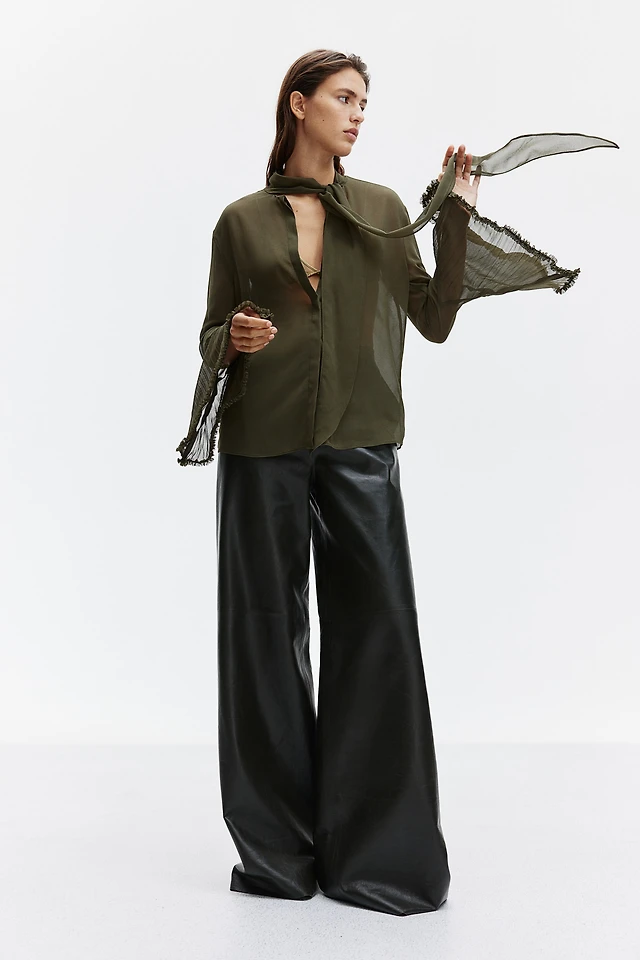 Petite Long Sleeve Split Neck Chiffon Blouse