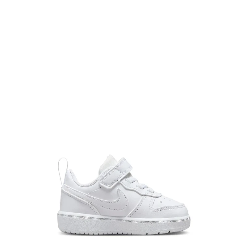You’re little one will look oh-so cool in these toddler unisex Nike Court Borough Low Recraft white/white/white sneakers. Made of synthetic upper containing at least 20% recycled content, these retro sneakers have a round toe, slip-on design, elastic laced front panel for easy wearing, and an adjustable hook-and-loop instep strap for a custom fit. Additional features include a convenient pull, lightly padded collar, and a TPR outsole. A redesigned toe box and midfoot offers a little extra room for comfort.