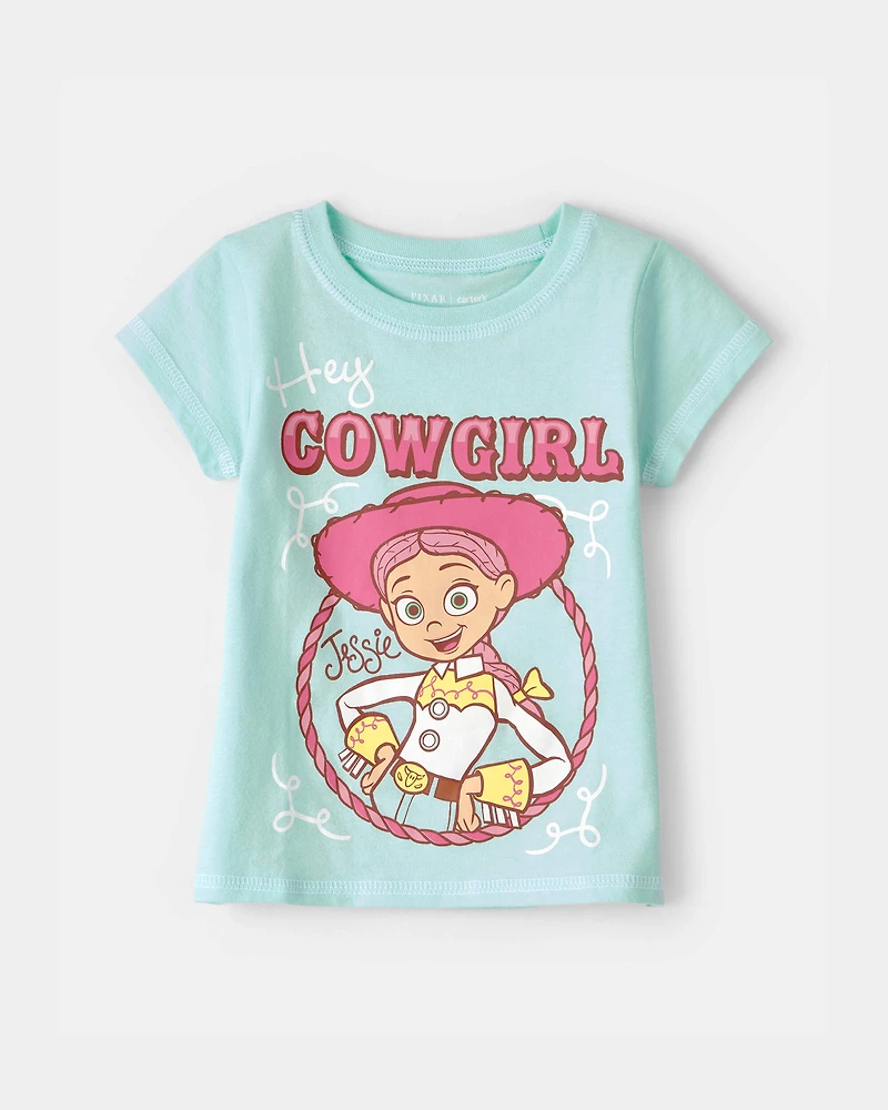 - Vibrant turquoise graphic featuring Jessie from Toy Story