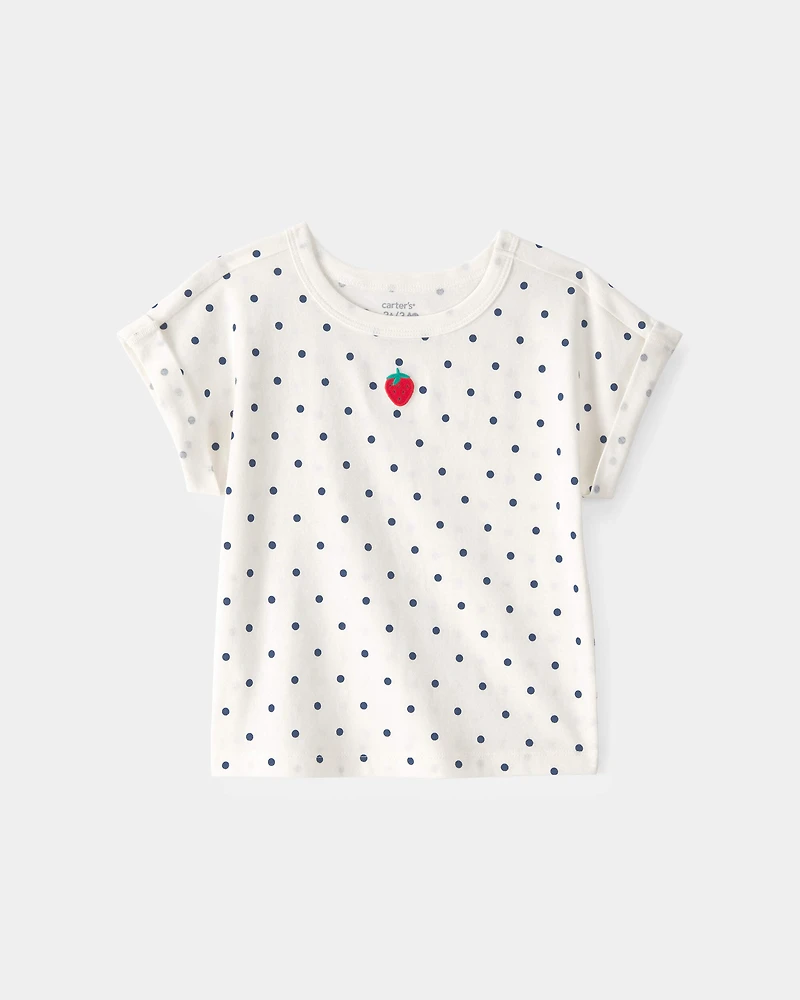 Toddler Girl Strawberry Polka Dot Top - White