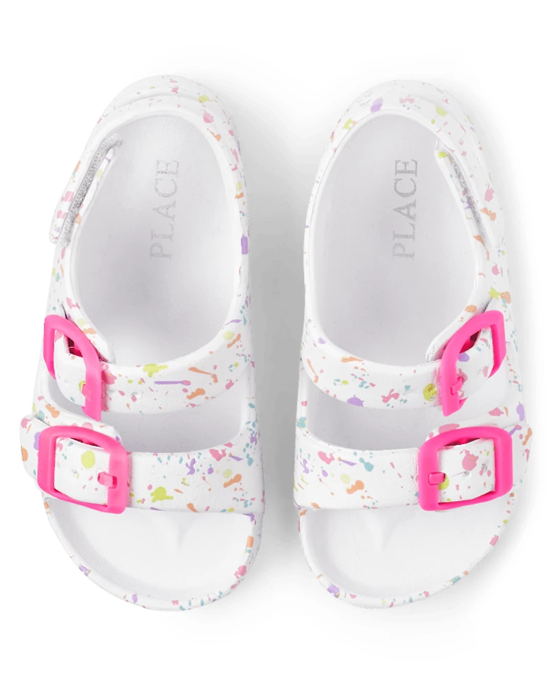 Toddler Girls Paint Splatter Buckle Slides