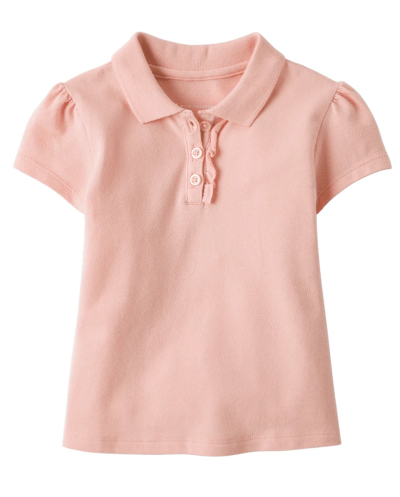 Toddler Girls Uniform Ruffle Soft Stretch Pique Polo