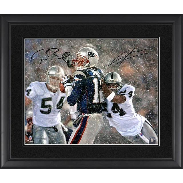 Tom Brady & Charles Woodson New England Patriots & Oakland Raiders Framed Autographed 16" x 20" Tuck Game Photograph