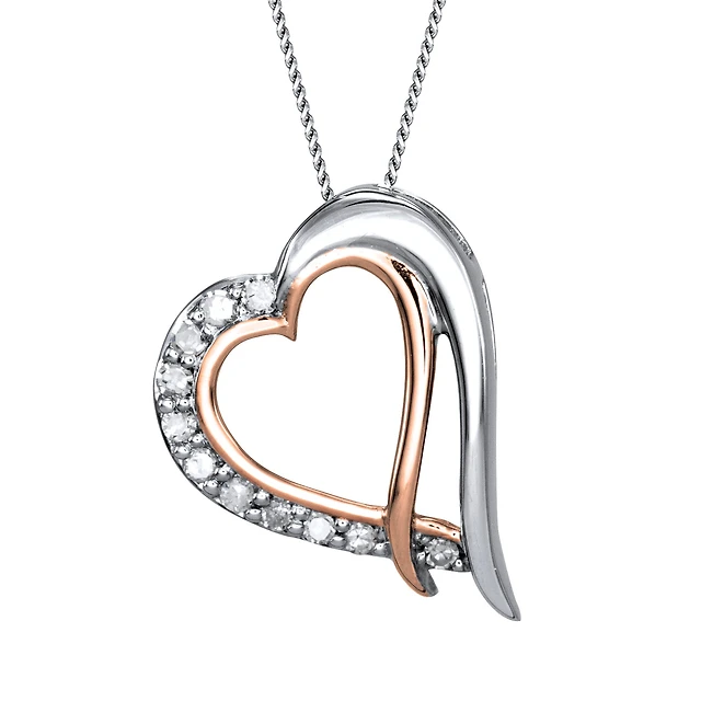 Two-Tone Double Heart Diamond Necklace in 10K White and Rose Gold (0.0