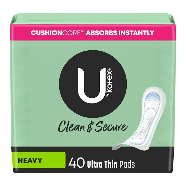 U by Kotex Clean & Secure Ultra Thin Pads with Wings - Heavy Absorbency - 32 Count