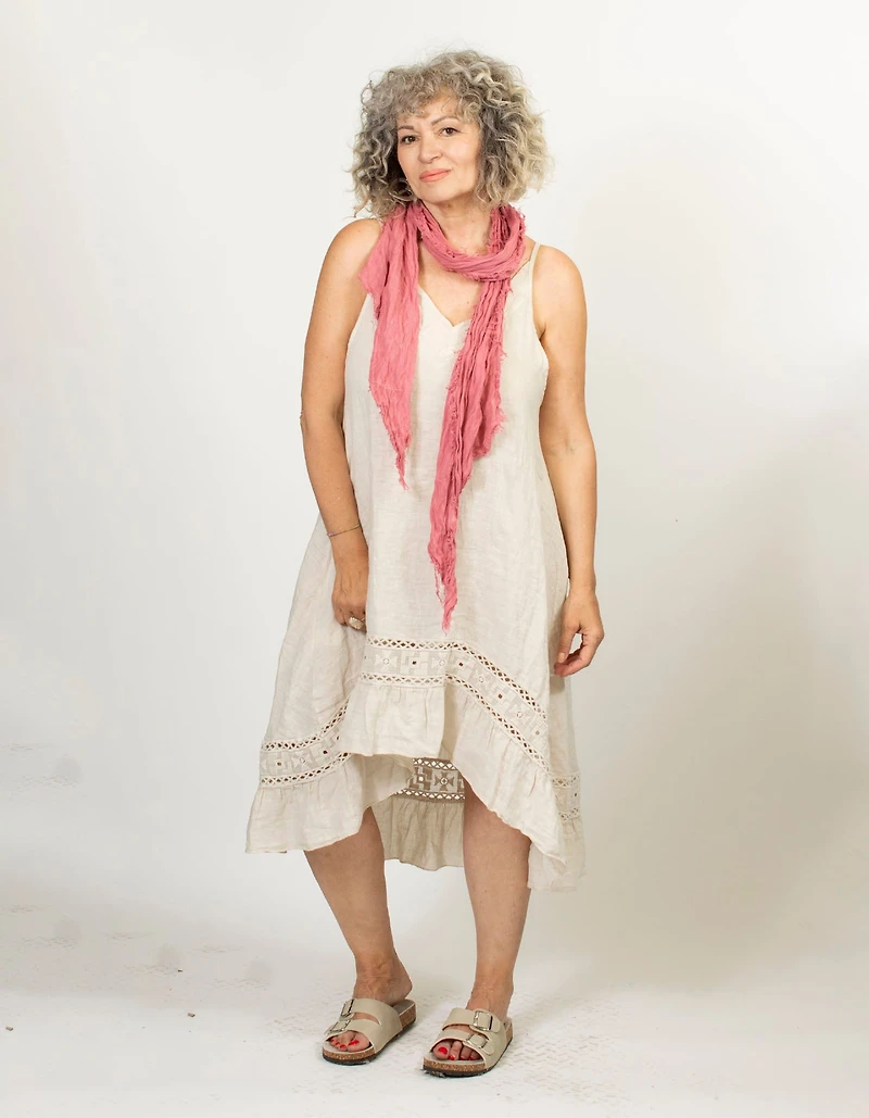What we call our spring uniform - this airy dress will let you stay cool and comfortable all day. Cut in a comfort-forward silhouette, it has that laid-back vibe we are all looking for in the deep of the heat. It's really all in the details that make this dress subtle yet super pretty, and most importantly: vacation ready.