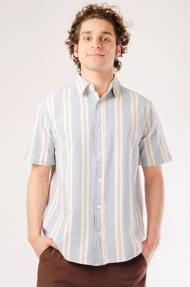 ISLAND HAZE VERTICAL STRIPE SHORT SLEEVE WOVEN SHIRT