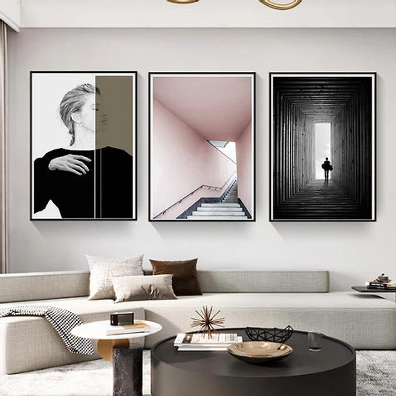 Vogue Set of 3 Alloy Matt - Black Frame Wall Art