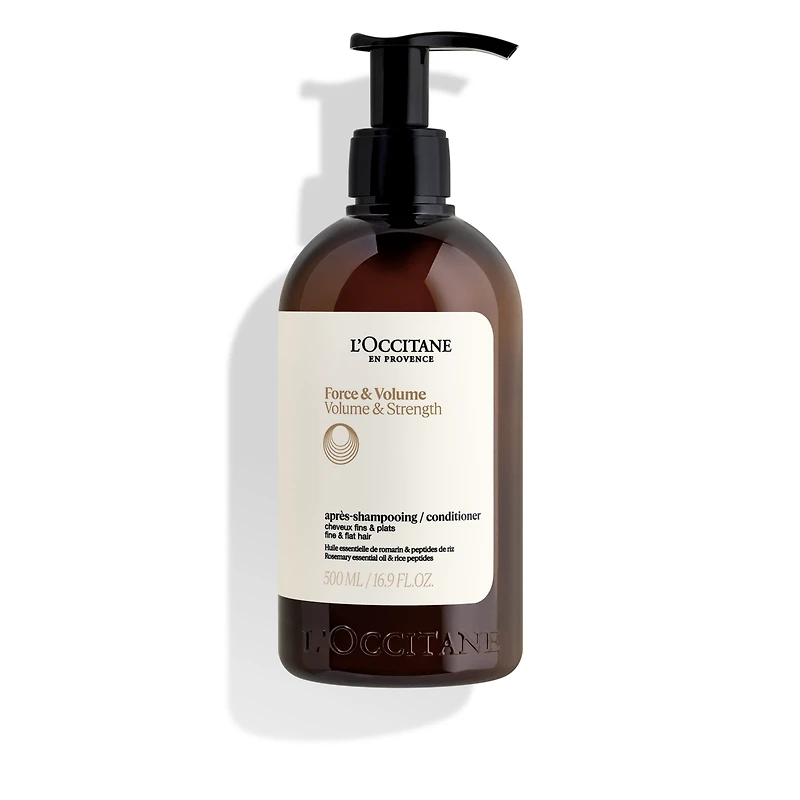 Formulated without silicones, this Volume and Strength conditioner moisturizes hair without weighing it down. Enriched with a NEW skincare-inspired ingredient, rice peptides, to add volume to the hair, as well as a blend of 5 essential oils and D-Panthenol to help coat the hair and make it stronger. This item is refill-ready; save it for your next refill.