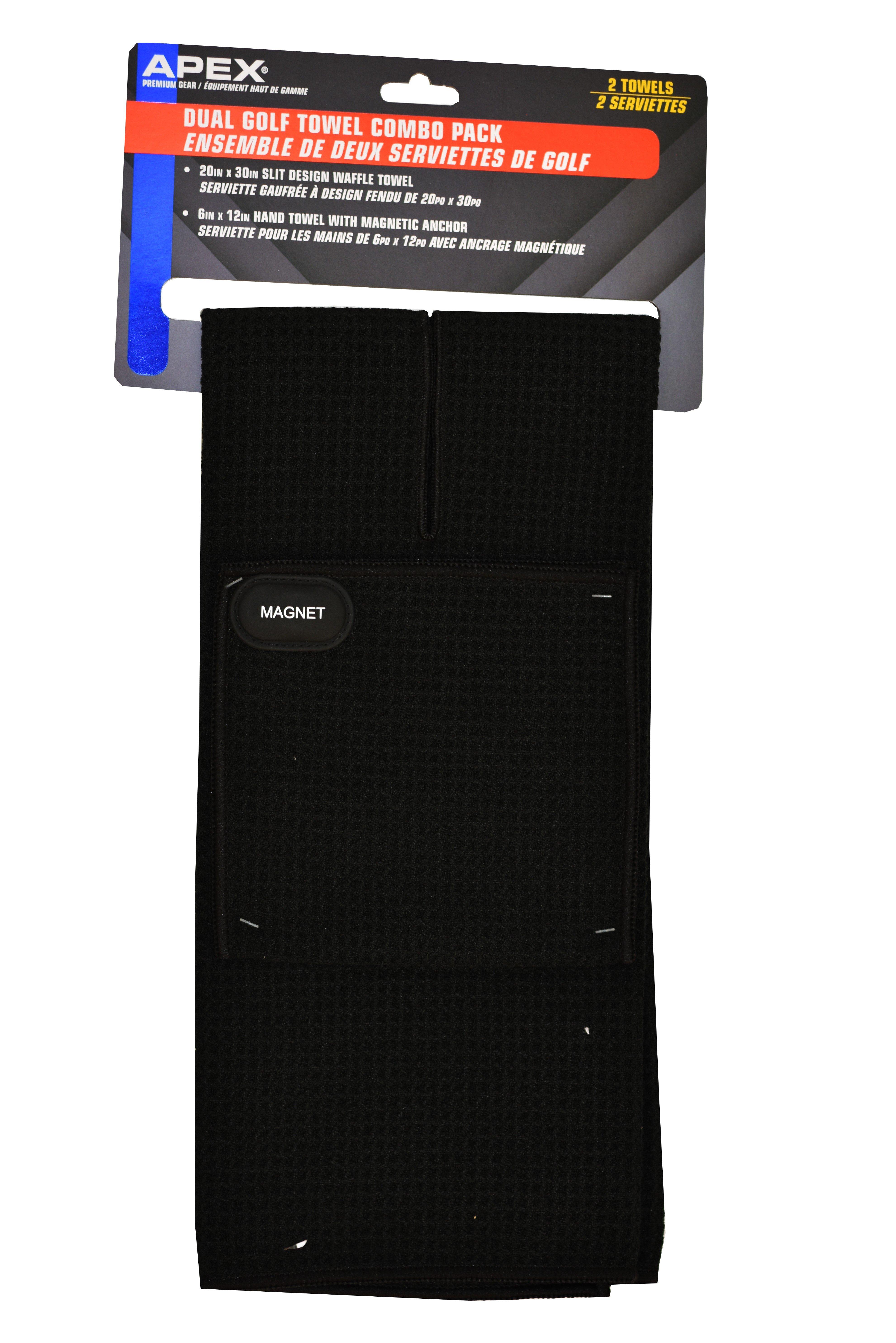 Includes a 20"x30" waffle towel a 6"x12" matching hand towel with a powerful magnetic anchor.