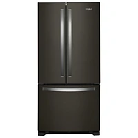 Bring family-sized food storage to your kitchen with the Whirlpool 33" 22.1 cu. ft. French door refrigerator. It's equipped with wall-to-wall glass shelves, humidity-controlled crispers, gallon door bins, and more to keep your food fresh and well-organized. It also features an interior water dispenser to provide fresh, filtered water. | Whirlpool 33" 22.1 Cu. Ft. French Door Refrigerator w/Water Dispenser(WRFF5333PV) - Black Stainless Steel