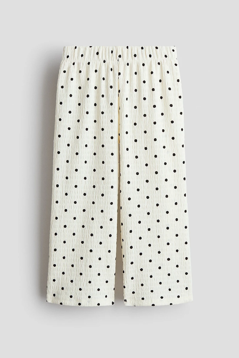 Pants in crinkled jersey with an elasticized waistband and wide legs.