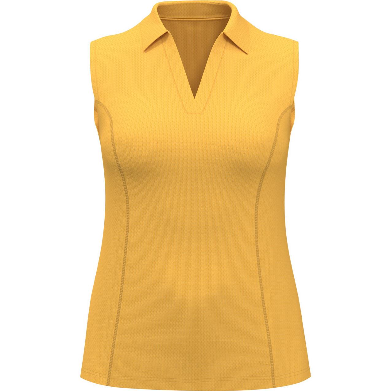 Made with innovative Airflux ventilated mesh fabric, this PGA TOUR APPAREL ladies’ golf top will help you stay cool and composed out on the fairway. The women’s golf shirt features moisture wicking to help keep you dry, while UV-blocking sun protection makes it a great option for playing long rounds under cloudless skies. Equally suitable for everyday casual wear, the sleeveless ladies’ golf shirt has a versatile solid-colored design that will complement everything from shorts and jeans to flowing skirts with ease.