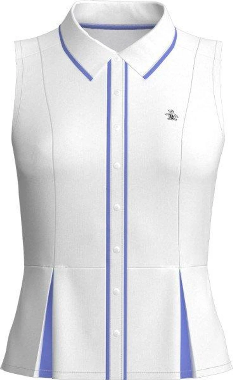 Swing into summer with the Original Penguin Women's Peplum Blocked Polo Shirt, designed for both style and comfort. This sleeveless polo is crafted from a luxurious 2/2 twill fabrication, offering subtle texture and a premium feel. The chic blocked design brings a modern edge to your look, while the stylish peplum hem creates a flattering silhouette. Engineered with moisture-wicking properties, this active top helps keep you refreshingly dry through any activity. Experience ultimate flexibility with its stretch-enhanced fabric, moving effortlessly with you. As a thoughtful bonus, this versatile women's shirt is thoughtfully made with recycled polyester materials. Perfect for the golf course, tennis court, or a stylish brunch, this peplum polo is a wardrobe MVP.