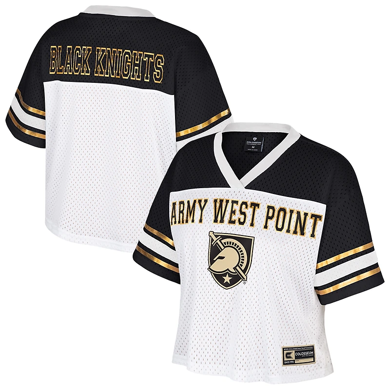 Embrace your Army Black Knights spirit in style with this Treasure Cropped Football Jersey from Colosseum. This cropped jersey features a trendy, game-day-ready look with its mesh fabric and contrast-color accents. The foil screen print Army Black Knights name and logo boldly displayed on the chest and back leave no doubt as to where your collegiate loyalty lies.
