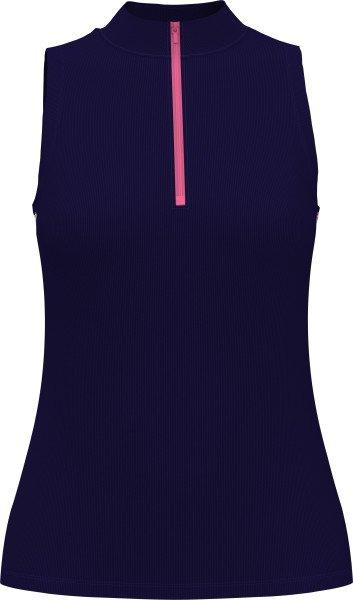 Comfortable and versatile, this PGA TOUR Apparel women's sleeveless golf shirt takes you seamlessly from a round of golf to a city stroll or lunch on the patio. The ribbed fabric includes moisture wicking for a dry feel that lasts through every hole while stretch shoulder seams offer flexibility and easy movement. The color blocking and zipper detail add smart finishing touches.