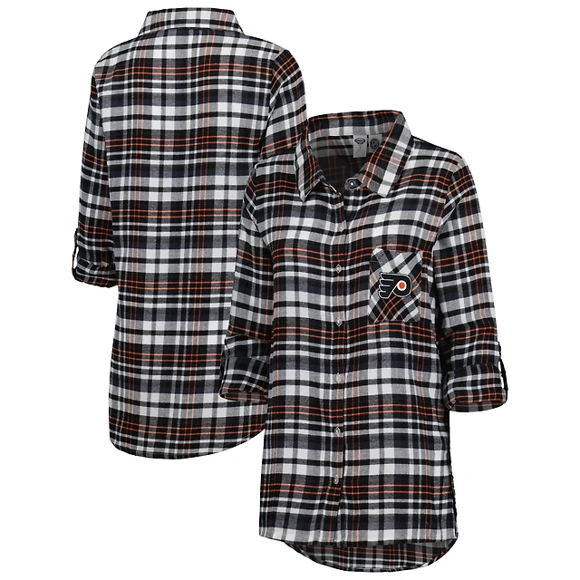 Women's Concepts Sport Black Philadelphia Flyers Mainstay Flannel Full-Button Long Sleeve Nightshirt