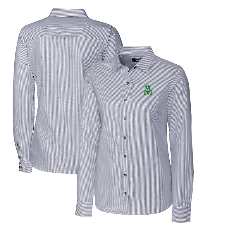 Women's Cutter & Buck Charcoal Marshall Thundering Herd Oxford Stripe Stretch Long Sleeve Button-Up Shirt in Coquitlam, BC