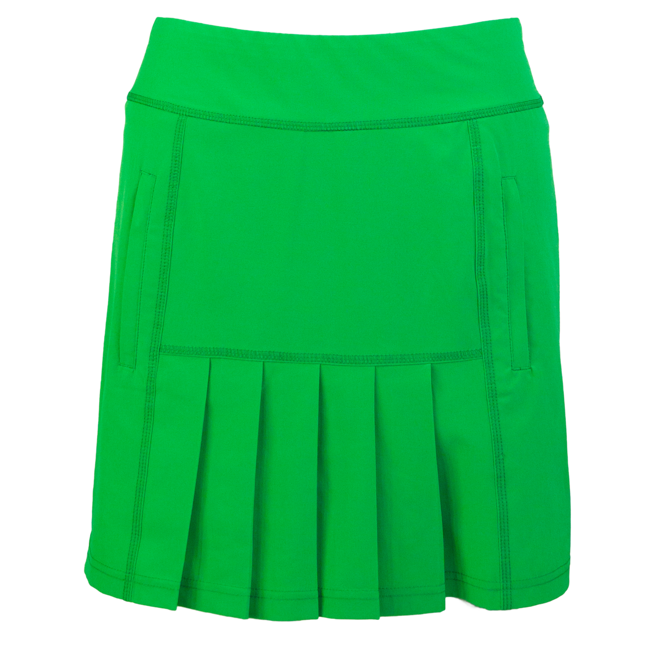 Dash off to the course in our customer favorite skort! The A line shape is flattering on all body types. The pleated sections at the front and back of this skort are flirty without too much fullness. The lightweight 4 way stretch fabric gives you the freedom to move. This skirt features two zip front pockets that secure your items. Soft micro mesh undershorts give breathability and stretch. With so many design elements, it’s no wonder this is one of our best loved skorts!