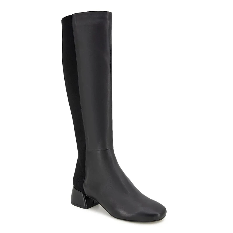 The Women's Emily Tall Boot by Gentle Souls features a sleek leather upper, slip-on design, and Poron cushioning for all-day comfort. It has a 1-inch block heel that adds elegance while ensuring stability, blending style and practicality for various occasions.