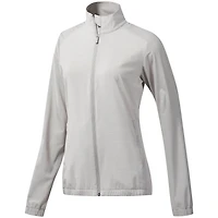 This women's golf jacket offers a sleek minimalist look for breezy conditions. It's built with lightweight woven fabric that keeps you comfortable for 18 holes. An elastic waistband and cuffs keep the wind out, while tonal heathered details on the front body and back yoke finish the look.