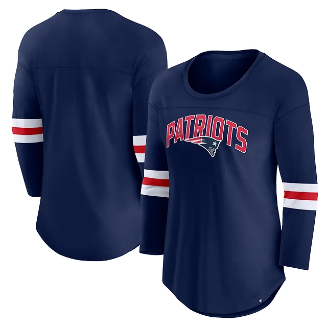 Women's Fanatics Navy New England Patriots First Team Arch Logo 3/4 Sleeve T-Shirt