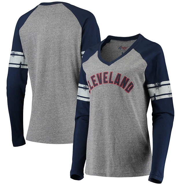 Women's G-III 4Her by Carl Banks Gray/Navy Cleveland Indians Franchise Tri-Blend Raglan Long Sleeve T-Shirt
