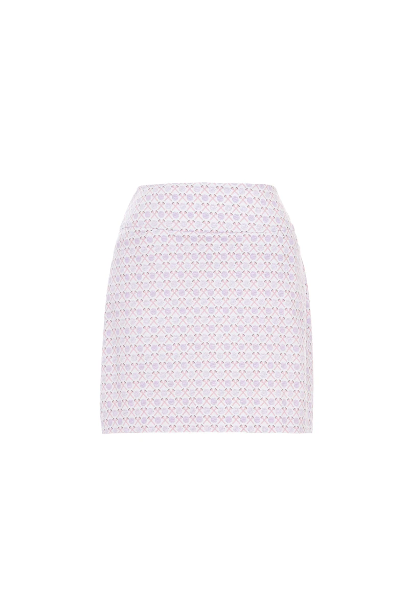 Spiff up your swing in this whimsical skort, featuring a playful print that celebrates the game itself. This piece not only looks good, it works as hard as you do, crafted from an exquisite stretch fabric for ample breathability, flexibility and top game performance. The easy pull-on elastic waistband holds and molds for a fab fit with exceptional comfort, complete with functional pockets that are streamlined yet roomy enough to carry your scorecard and tees. Flirty side vents amp up the playful vibe, for a look that is stylish, sweet, and super-fun.
