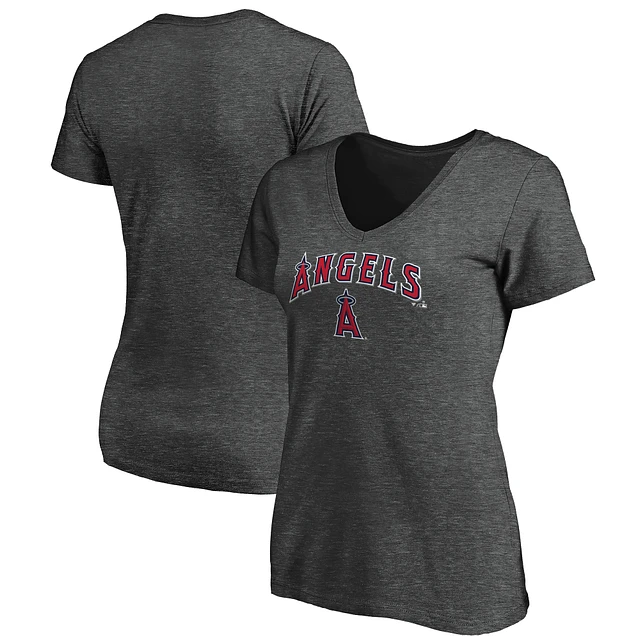 Women's Heathered Charcoal Los Angeles Angels Team Logo Lockup V-Neck T-Shirt