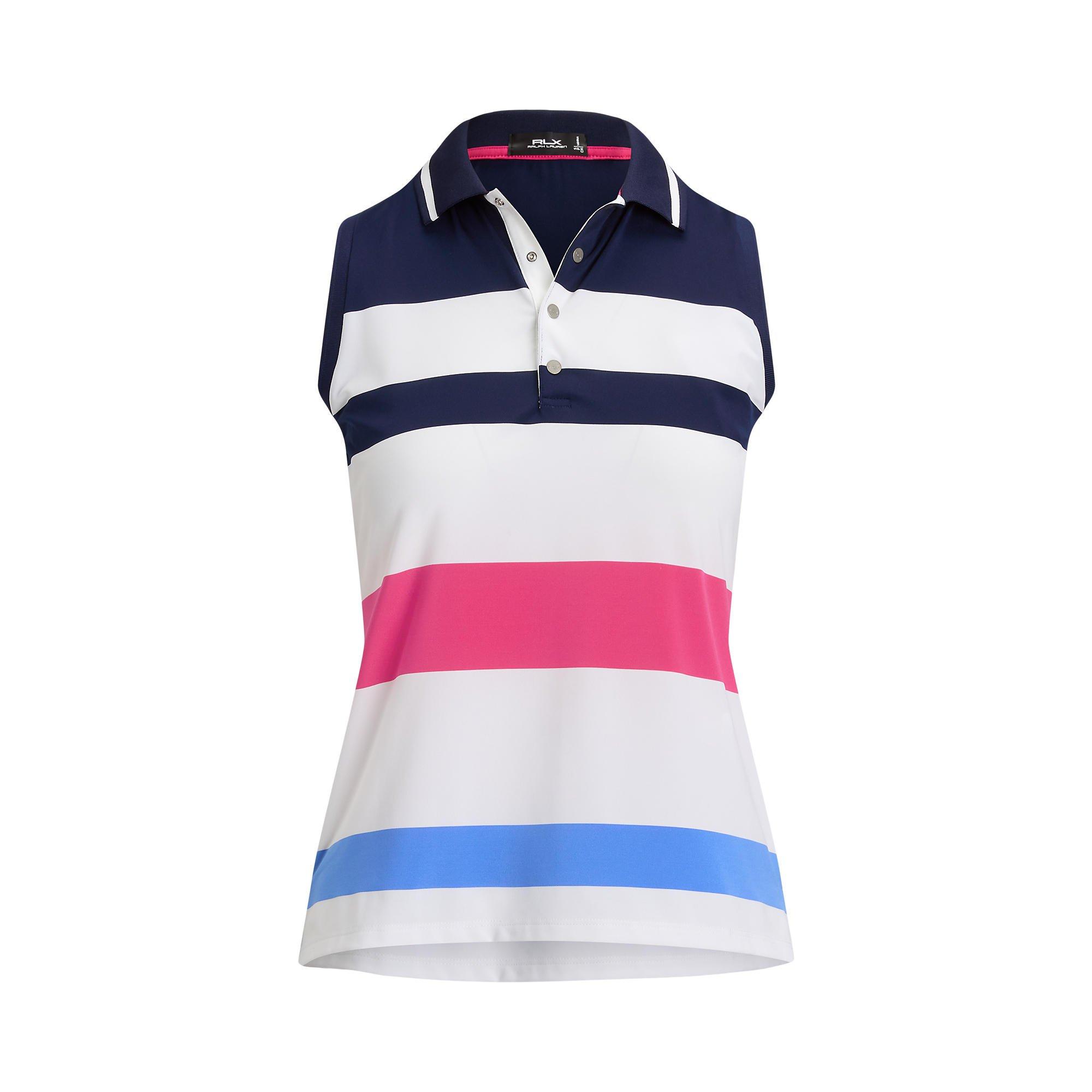 Featuring a striped motif, this sleeveless Tailored Fit Polo shirt combines a stretch jersey body and a ribbed Polo collar with contrast tipping. Our “RLX” logo is printed at the right shoulder and engraved at the metal snaps.