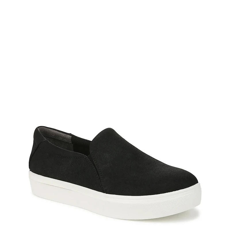 The Dr. Scholl's women's madison slip on black sneaker feature a durable PU upper with an oblique toe shape for added comfort and style. Inside, the fabric lining and foam footbed offer a soft, cushioned feel for all-day wear. With a synthetic outsole, these sneakers provide a stable, supportive foundation.