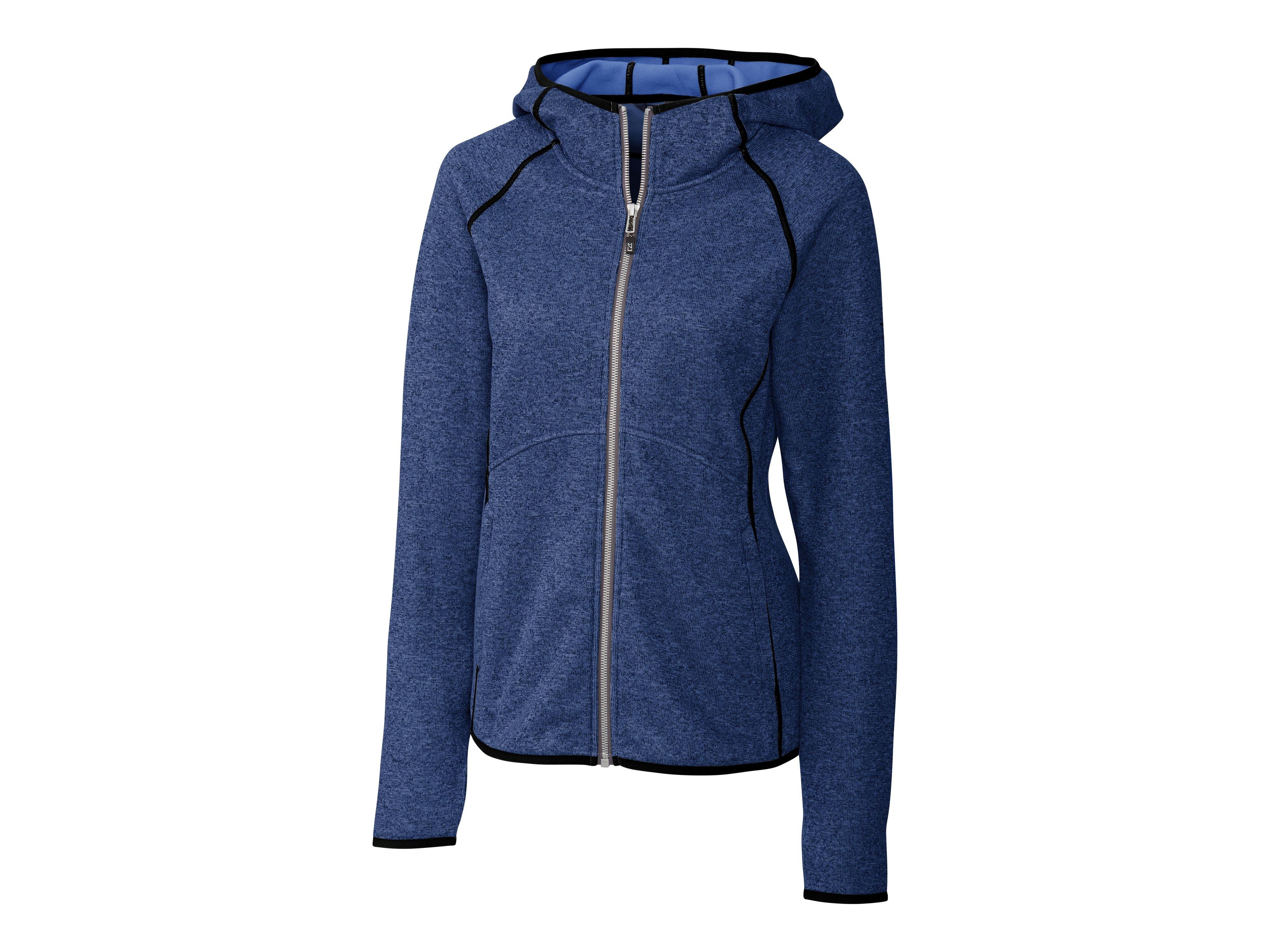 Women's Cutter & Buck Heathered Navy UConn Huskies Wordmark Mainsail Full-Zip Hooded Jacket