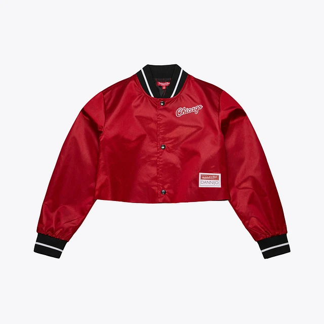 Women's Mitchell & Ness x DANNIJO Red Chicago Bulls Cropped Satin Full-Snap Jacket