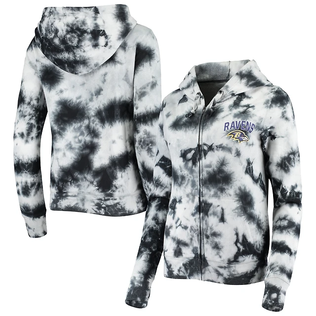 Women's New Era Black Baltimore Ravens Tie Dye Fleece Full-Zip Hoodie