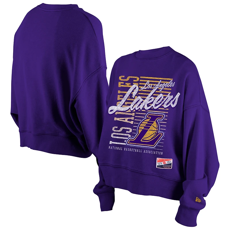 Women's New Era Purple Los Angeles Lakers Boxy Throwback Mineral Wash Sweatshirt