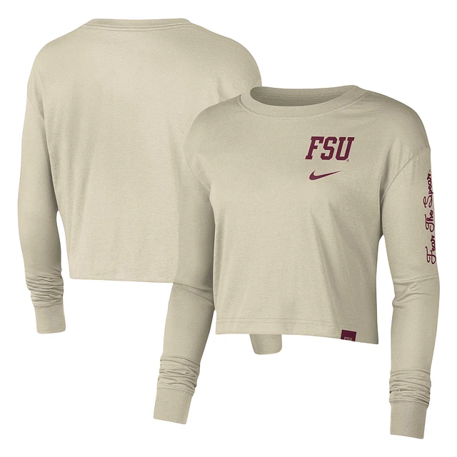 Women's Nike Cream Florida State Seminoles Varsity Letter Long Sleeve Crop Top