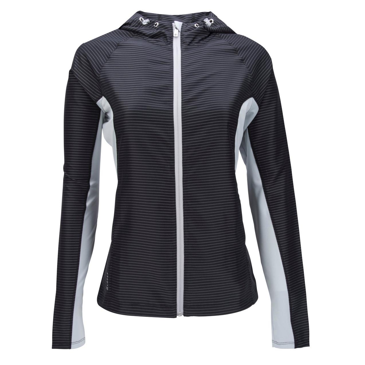 In your element, there’s nothing that holds you back with the Nancy Lopez Womens’ Pivot Jacket. This long sleeve, full-zip jacket features wind and water-resistant materials to keep you dry, warm and on top of your game. It’s made with 100% woven striped Polyester for the most comfortable, versatile piece of sportswear. The stretch knit side panels allow for a better range of movement. Use the front hand pockets to store earbuds, tees, a cellphone or chilled hands during those early morning practices. After your game, store this fully packable jacket into the back-zip pocket to maximize the storage space in your closet. With the signature Lopez logo at the right hip, this jacket leaves an everlasting mark on the golfer and her undefeated game. Pivot Jacket is the perfect choice to pair with a patterned or single-colour golf bottom.
