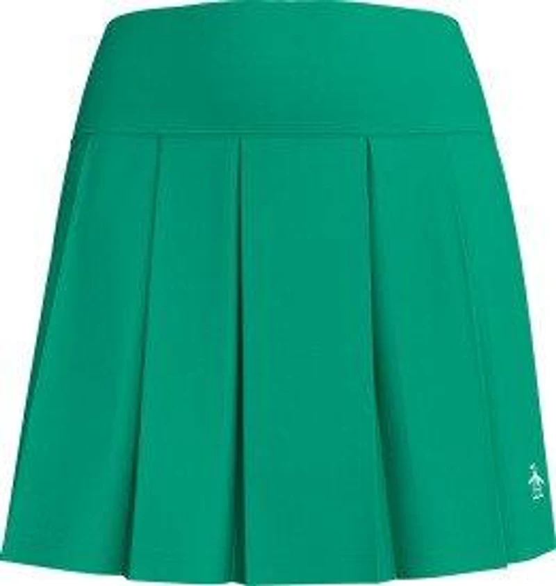Get ready to move in style with Original Penguin's women's pleated skort, perfect for your next tennis match or a chic golf outing. Crafted from a 2/2 twill fabrication, this active skort offers incredible comfort and flexibility, enhanced with stretch to keep up with your every dynamic stride. Stay fresh and confident thanks to its advanced moisture-wicking technology, ensuring you remain dry from your first serve to your final putt. Not only is this fashionable skort performance-driven, but it's also consciously crafted from recycled polyester, merging smart design with modern sensibilities. The elegant pleated detailing and 17-inch length provide a versatile look, complete with integrated shorts for absolute freedom and peace of mind. This women's pleated skort is the ultimate blend of athletic utility and sophisticated fashion.