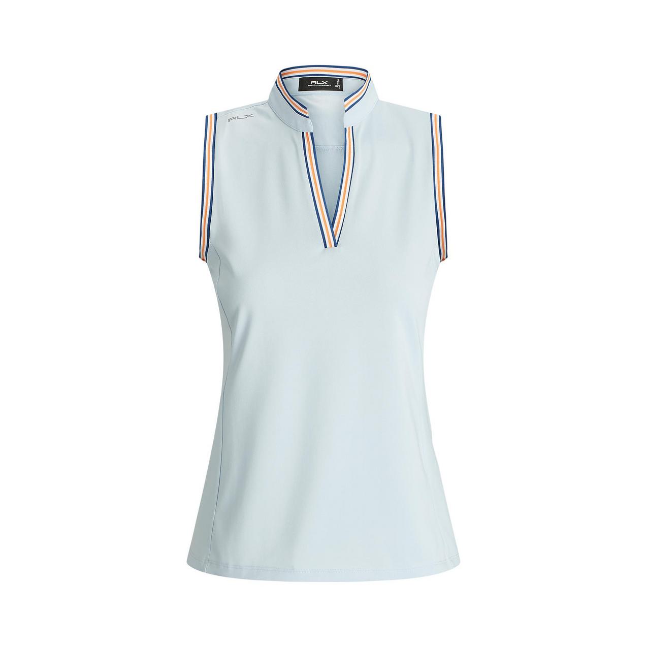Stay cool and stylish on the course with the RLX Women's Popover V-Neck Sleeveless Top. This top is designed with a V-neck and sleeveless cut for a flattering fit and maximum comfort during your swing.