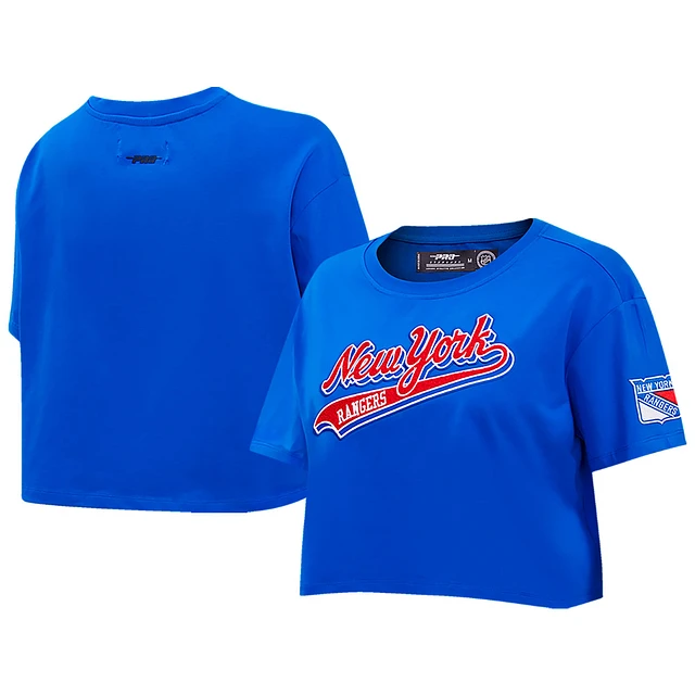 Women's Pro Standard Blue New York Rangers Boxy Script Tail Cropped T-Shirt